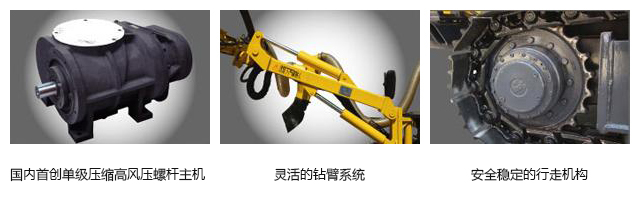 “開山”牌KT7型一體式露天潛孔鉆車是將潛孔鉆鑿系統和螺桿空氣壓縮系統融為一體的先進鉆鑿設備,以一臺六缸柴油機為兩個系統提供動力,結構緊湊,整體性好,移動方便。鉆車裝備的擁有核心知識產品的單級壓縮高風壓螺桿機頭,應用了國際先進的湯氏Y形線,流動量大(13m3/min),氣壓高(1.7MPa),為高風壓氣動沖擊器提供強勁動力,鑿巖速度比中風壓鉆車高20%-50%。