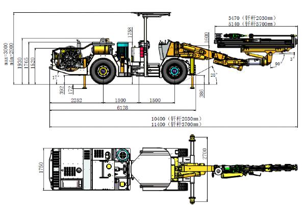 KJ313型全液壓掘進鉆車適用于12-35平方米斷面的硬巖礦山掘進作業(yè),專為兼顧打錨桿而設(shè)計,可在4m高巷道鉆鑿2.2m深的錨桿孔。
